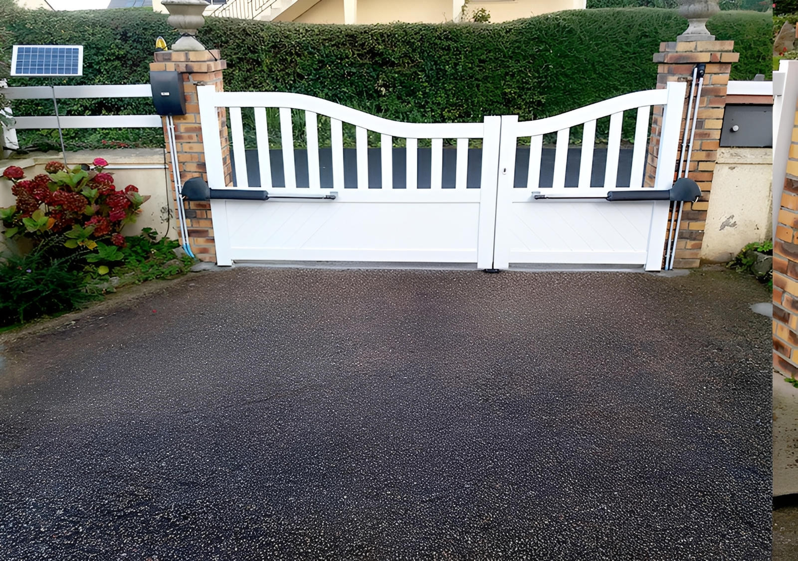 - Coppia di colonne autonome: Una colonna è di 120cm con interruttore a chiave integrato e sensore di sicurezza a infrarossi (fotocellule)